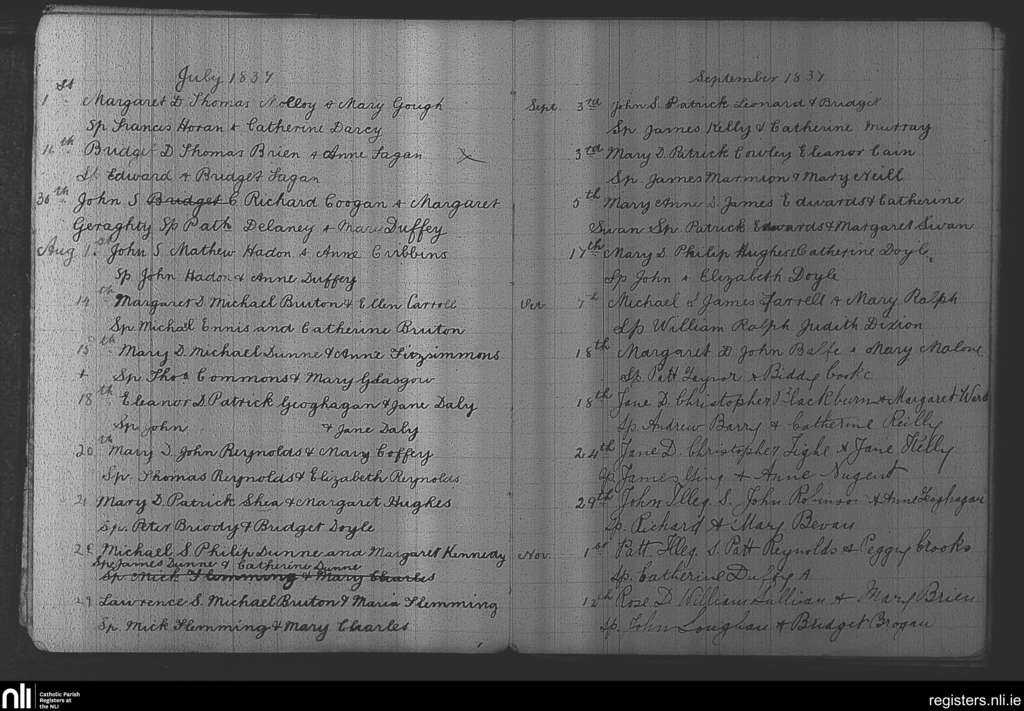 Kilcloon, Batterstown and Kilcock; County of Meath; Diocese of Meath. Baptisms, July 1837 to Nov. 1837