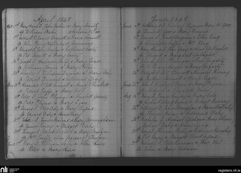 Kilcloon, Batterstown and Kilcock; County of Meath; Diocese of Meath. Baptisms, Apr. 1849 to Aug. 1849