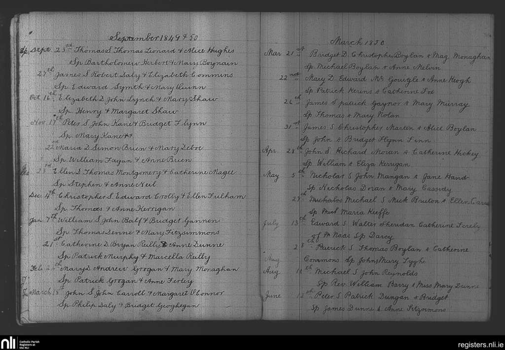 Kilcloon, Batterstown and Kilcock; County of Meath; Diocese of Meath. Baptisms, Sep. 1849 to Aug. 1850