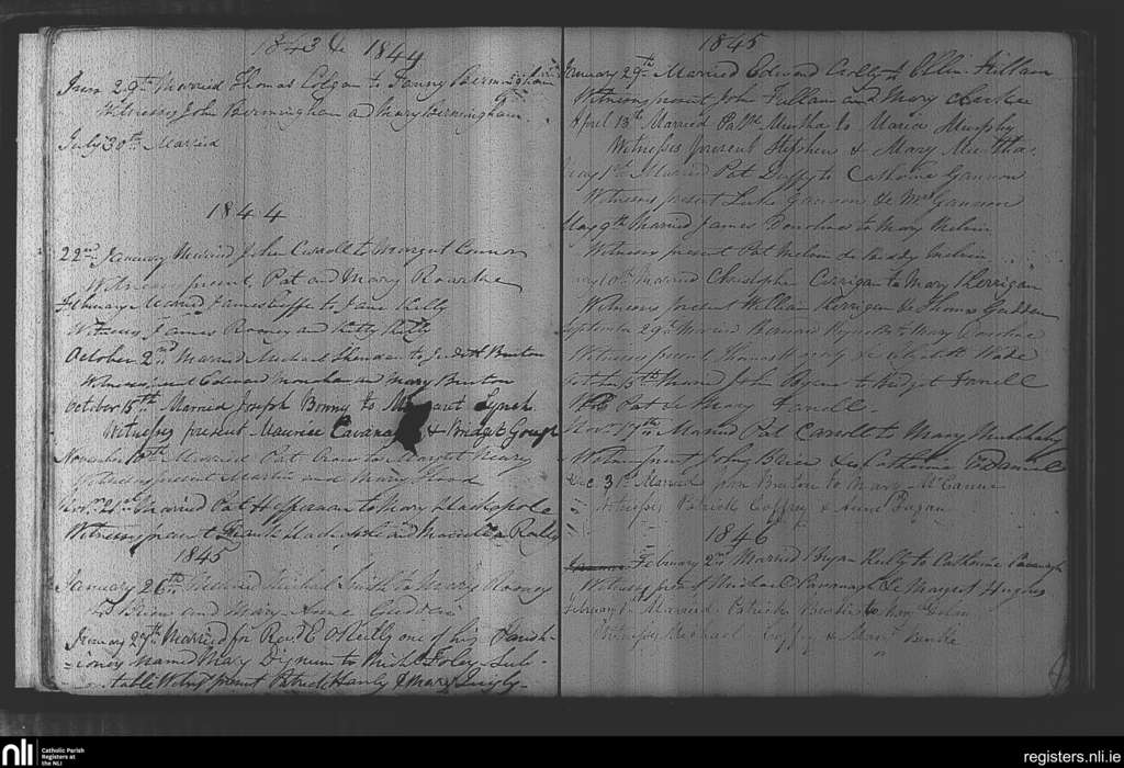 Kilcloon, Batterstown and Kilcock; County of Meath; Diocese of Meath. Marriages, Jan. 1844 to Feb. 1846