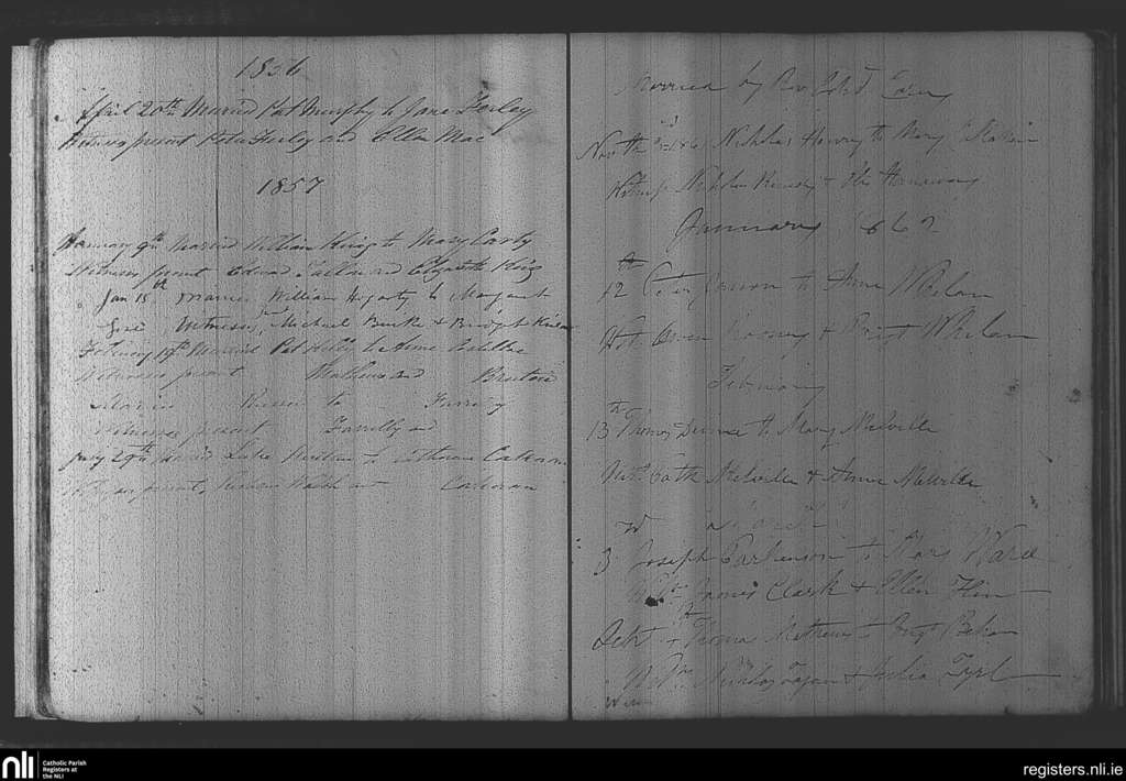Kilcloon, Batterstown and Kilcock; County of Meath; Diocese of Meath. Marriages, Apr. 1856 to Mar. 1862