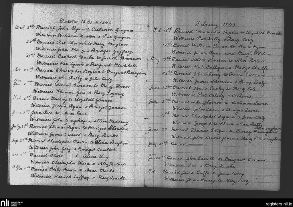 Kilcloon, Batterstown and Kilcock; County of Meath; Diocese of Meath. Marriages, Oct. 1841 to Feb. 1844