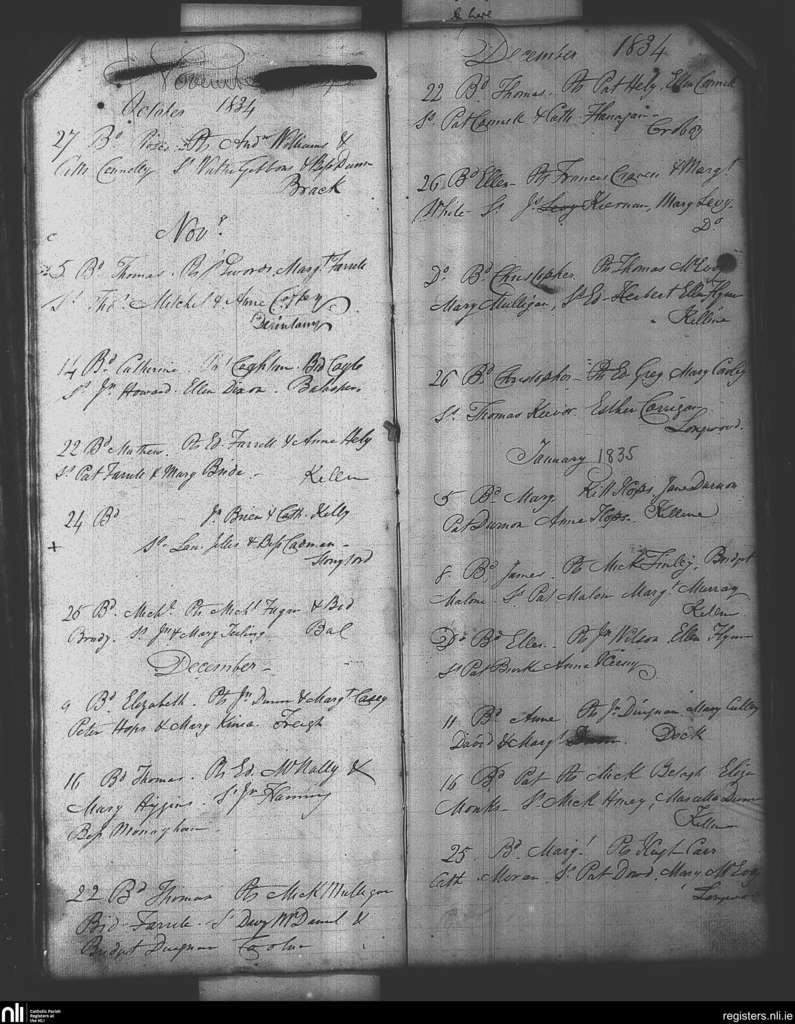 Killine; County of Meath; Diocese of Meath. Baptisms, Oct. 1834 to Jan. 1835