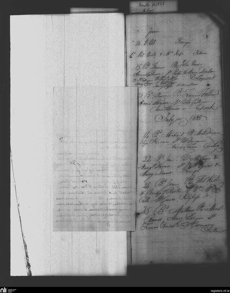 Killine; County of Meath; Diocese of Meath. Baptisms, June 1835 to July 1835
