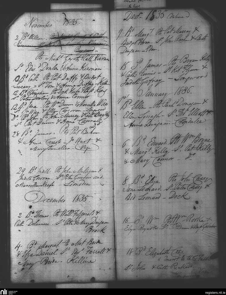 Killine; County of Meath; Diocese of Meath. Baptisms, Nov. 1835 to Jan. 1836