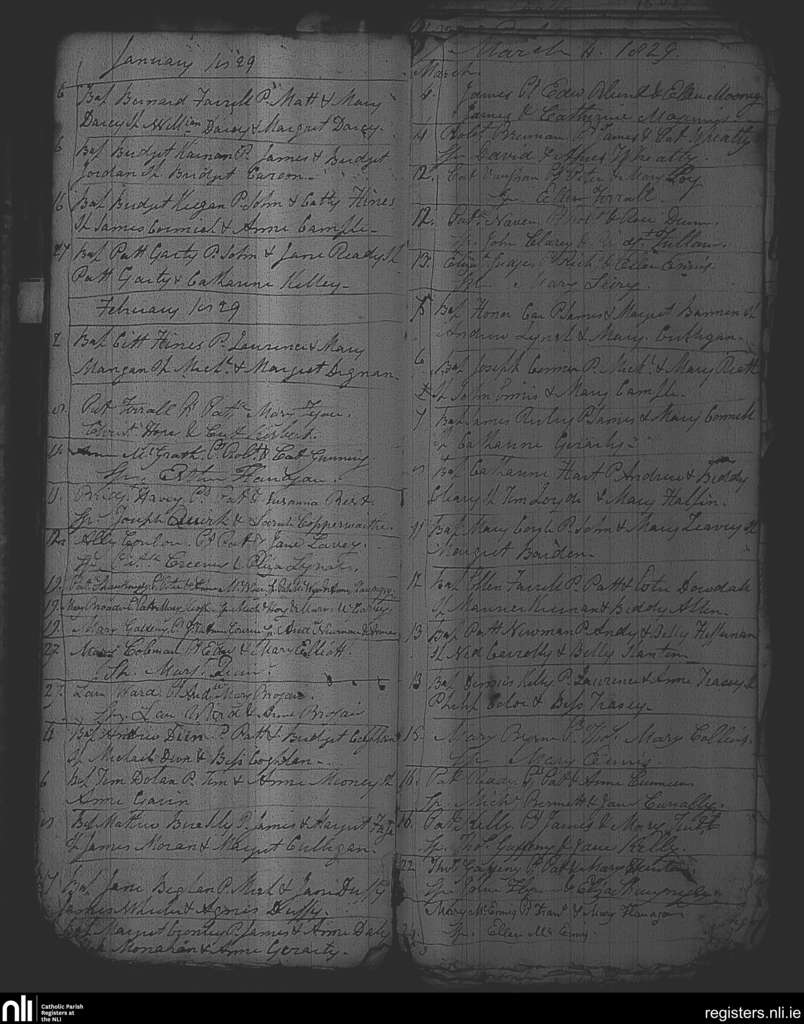 Kinnegad; County of Westmeath; Diocese of Meath. Baptisms, Jan. 1829 to Mar. 1829