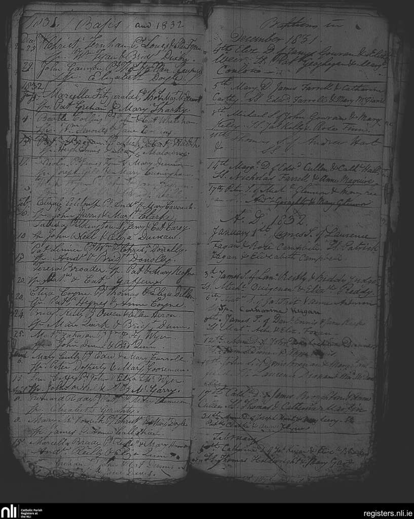 Kinnegad; County of Westmeath; Diocese of Meath. Baptisms, Dec. 1831 to Apr. 1832