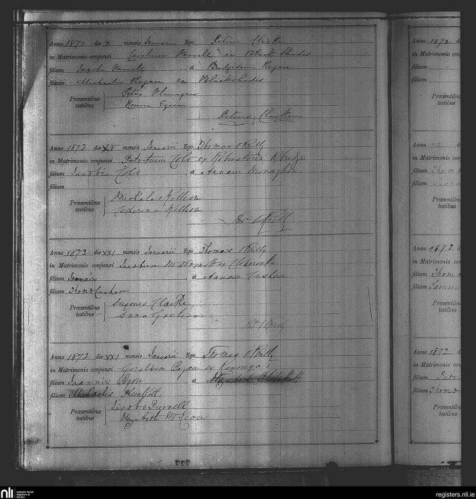 Kinnegad; County of Westmeath; Diocese of Meath. Marriages, Jan. 1872