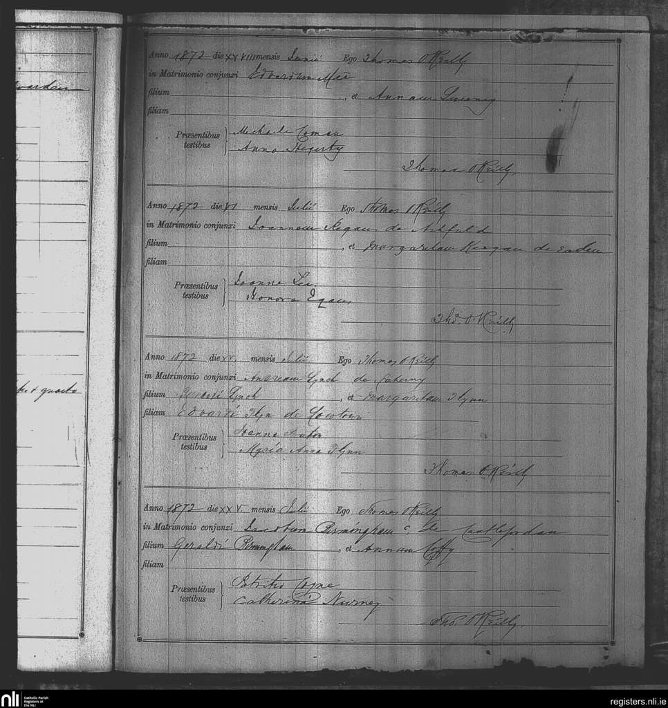 Kinnegad; County of Westmeath; Diocese of Meath. Marriages, June 1872 to July 1872
