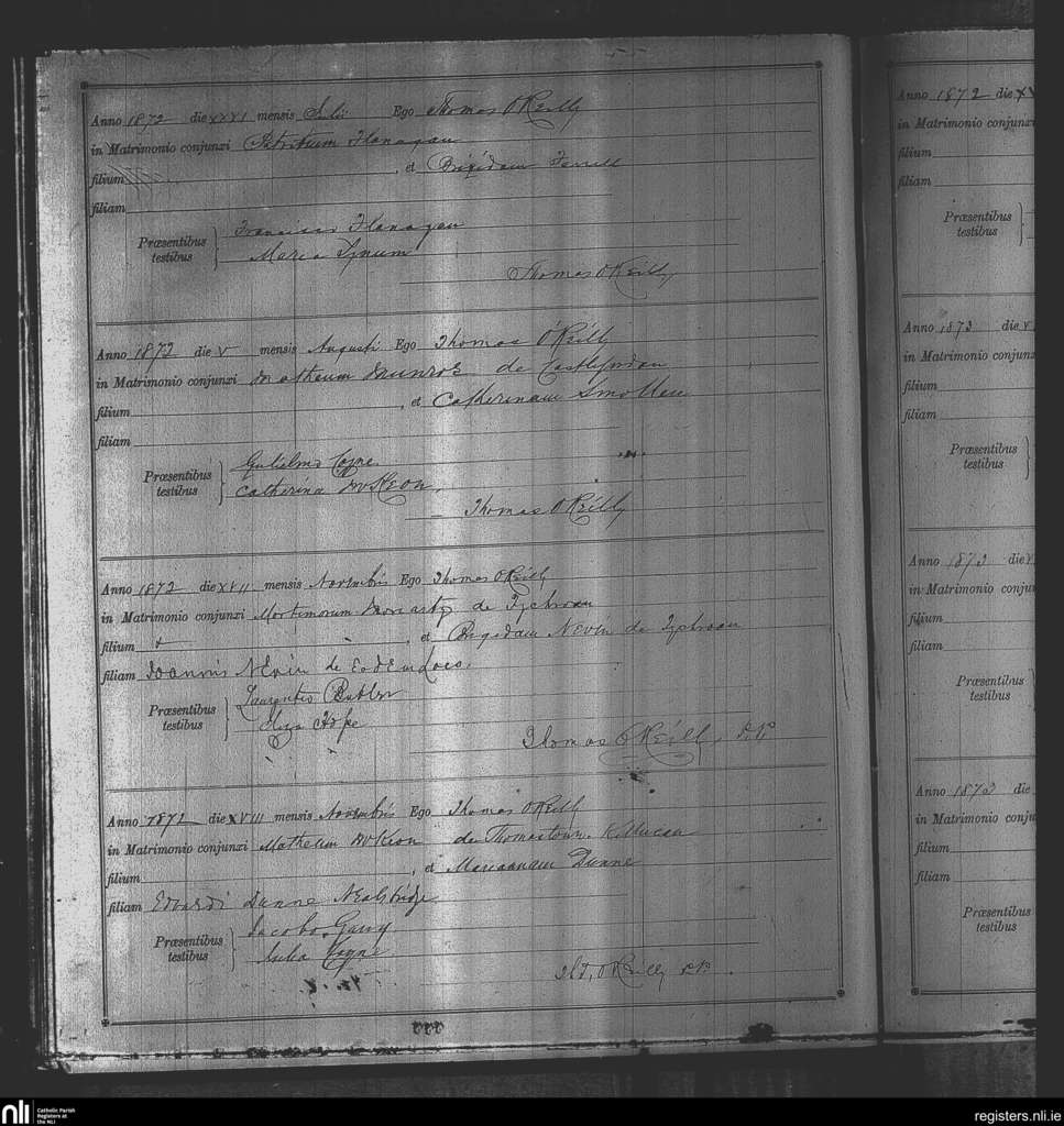Kinnegad; County of Westmeath; Diocese of Meath. Marriages, July 1872 to Nov. 1872