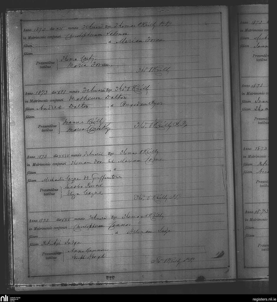 Kinnegad; County of Westmeath; Diocese of Meath. Marriages, Feb. 1873