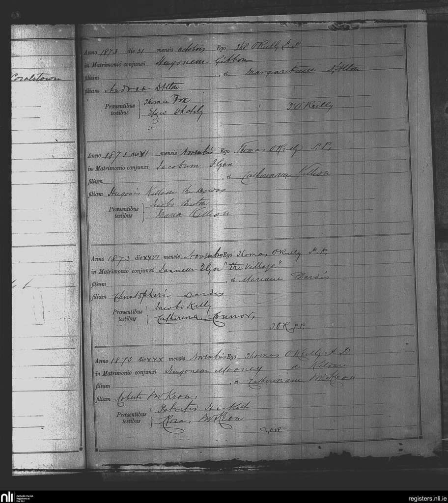 Kinnegad; County of Westmeath; Diocese of Meath. Marriages, Oct. 1873 to Nov. 1873