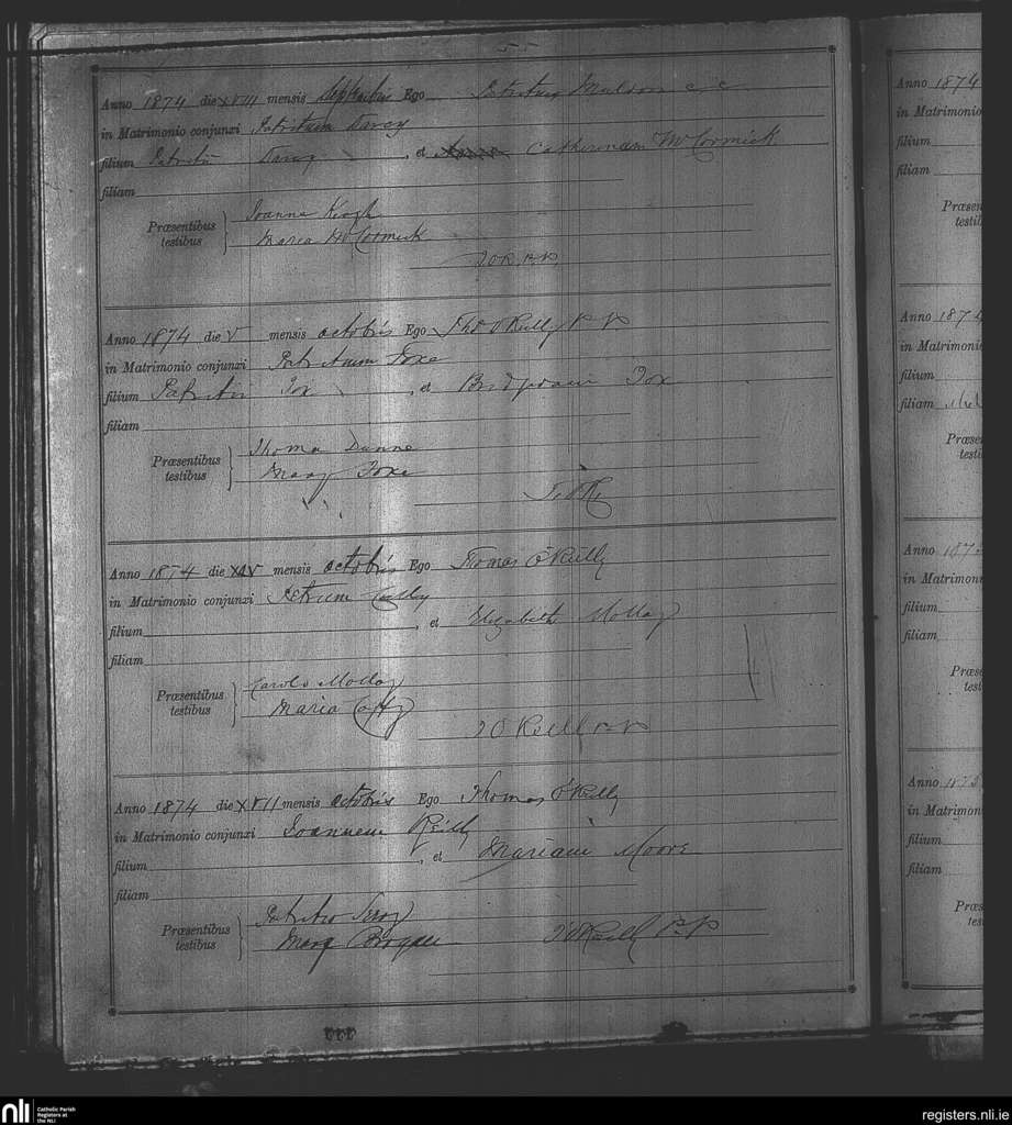 Kinnegad; County of Westmeath; Diocese of Meath. Marriages, Sep. 1874 to Oct. 1874