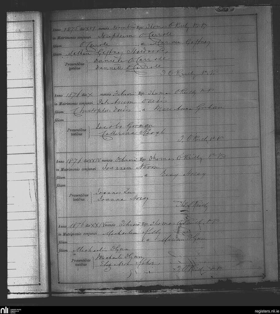 Kinnegad; County of Westmeath; Diocese of Meath. Marriages, Nov. 1875 to Feb. 1876