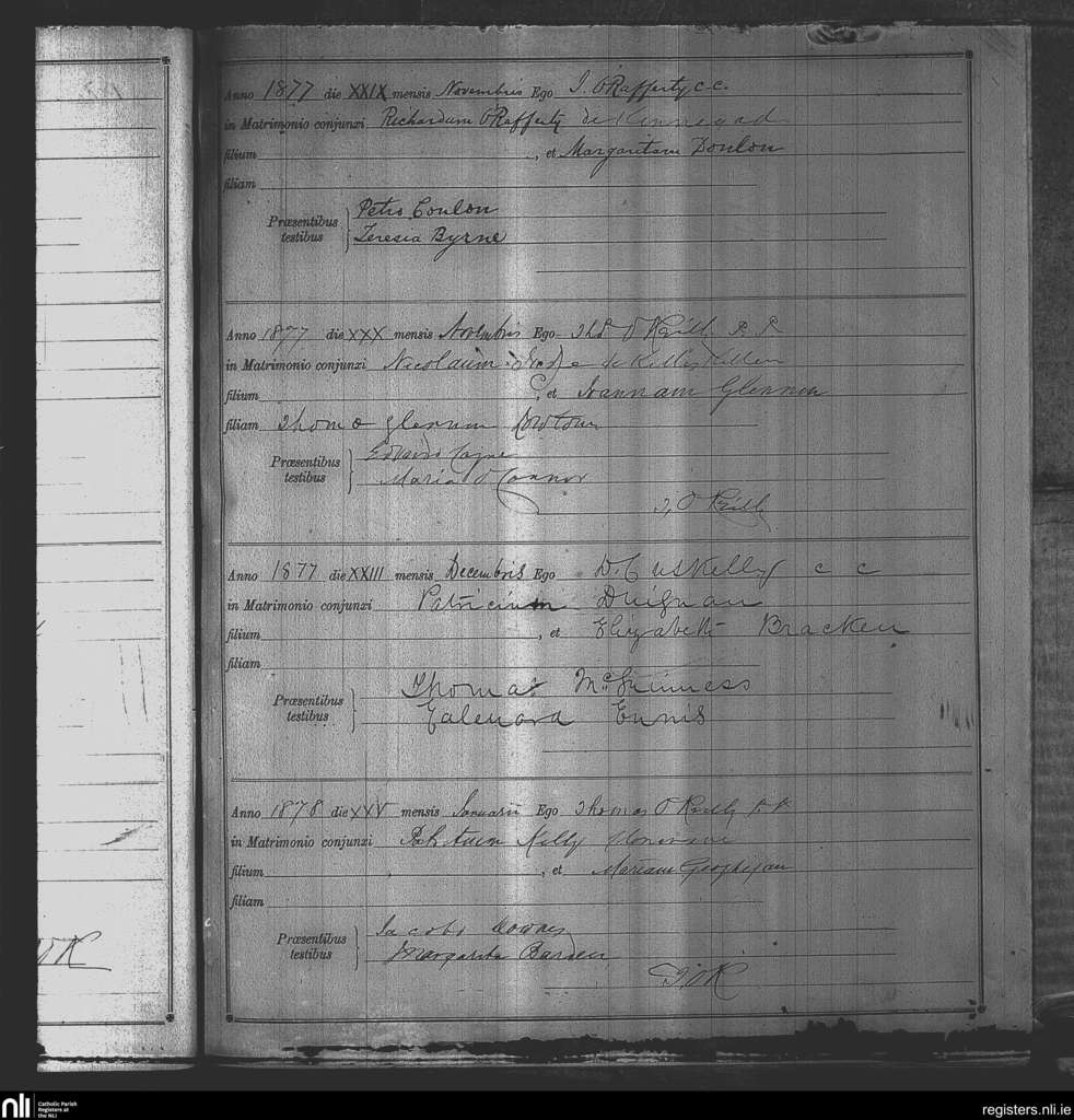 Kinnegad; County of Westmeath; Diocese of Meath. Marriages, Nov. 1877 to Jan. 1878