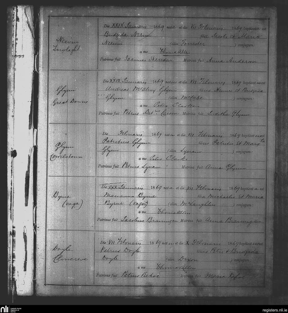 Kinnegad; County of Westmeath; Diocese of Meath. Baptisms, Feb. 1869