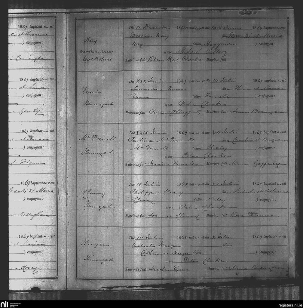 Kinnegad; County of Westmeath; Diocese of Meath. Baptisms, June 1869 to July 1869