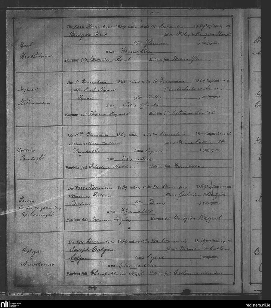 Kinnegad; County of Westmeath; Diocese of Meath. Baptisms, Dec. 1869