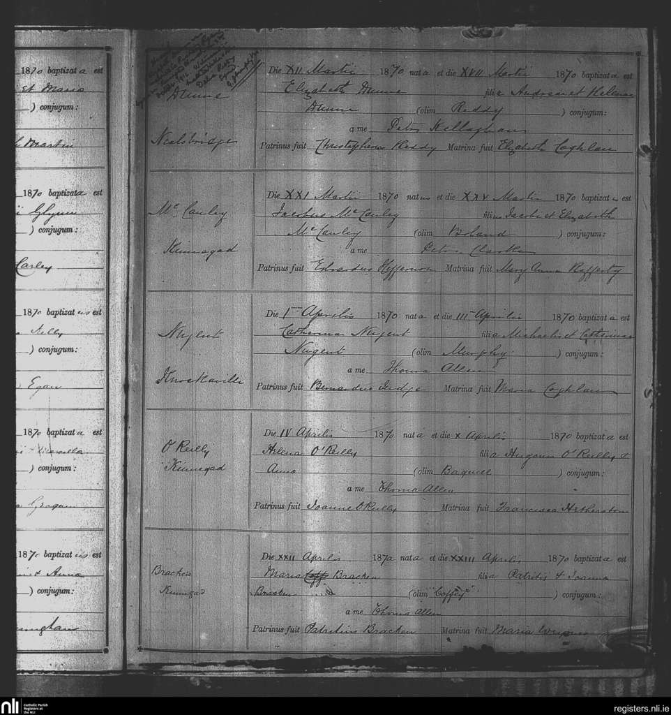 Kinnegad; County of Westmeath; Diocese of Meath. Baptisms, Mar. 1870 to Apr. 1870