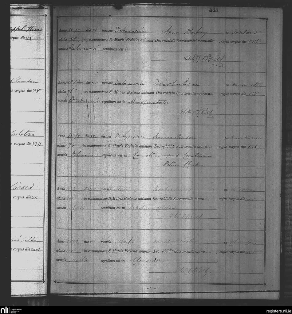 Kinnegad; County of Westmeath; Diocese of Meath. Deaths, Feb. 1872 to Mar. 1872