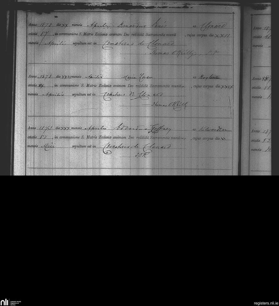 Kinnegad; County of Westmeath; Diocese of Meath. Deaths, Apr. 1873 to May 1873