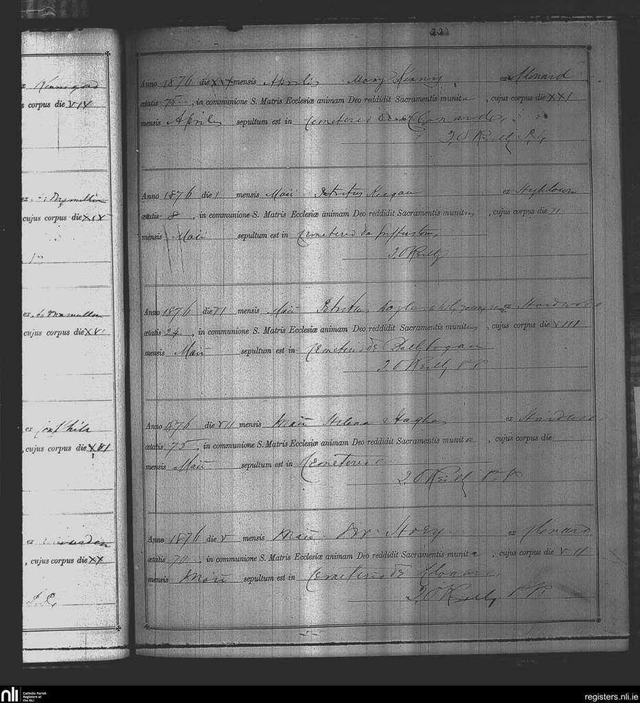 Kinnegad; County of Westmeath; Diocese of Meath. Deaths, Apr. 1876 to May 1876
