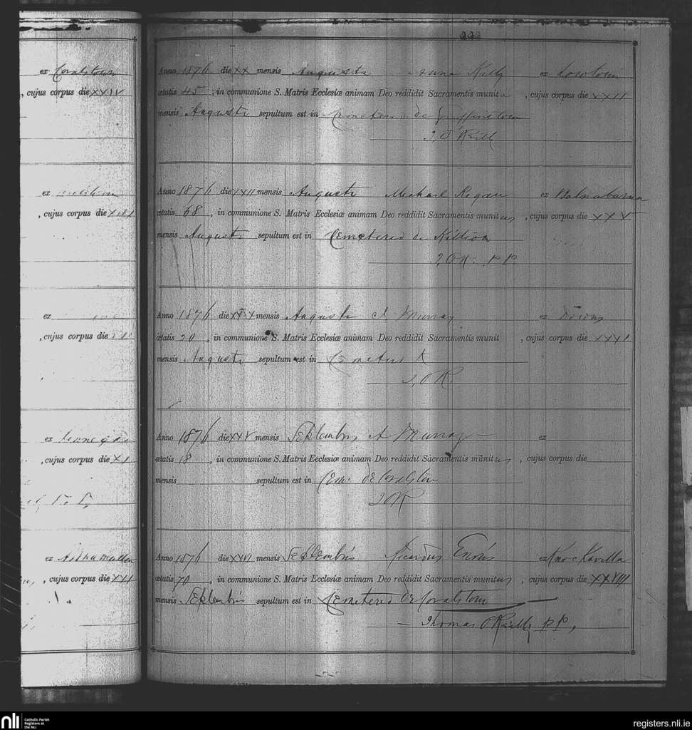 Kinnegad; County of Westmeath; Diocese of Meath. Deaths, Aug. 1876 to Sep. 1876