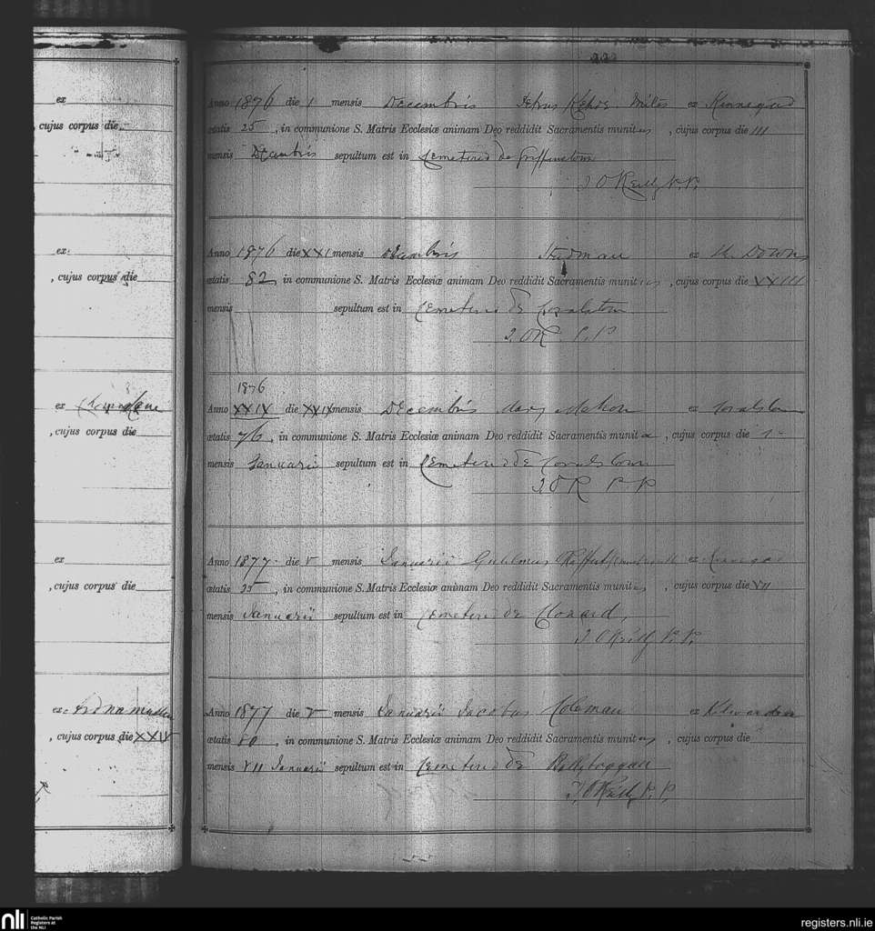 Kinnegad; County of Westmeath; Diocese of Meath. Deaths, Dec. 1876 to Jan. 1877
