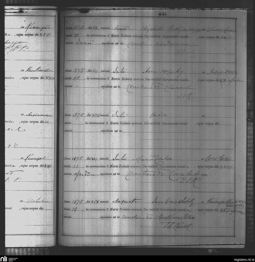 Kinnegad; County of Westmeath; Diocese of Meath. Deaths, June 1878 to Aug. 1878