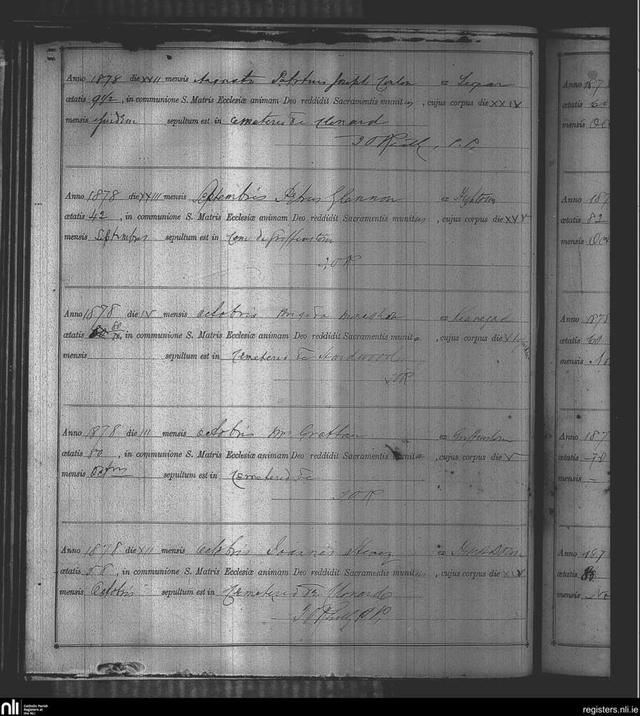 Kinnegad; County of Westmeath; Diocese of Meath. Deaths, Aug. 1878 to Oct. 1878