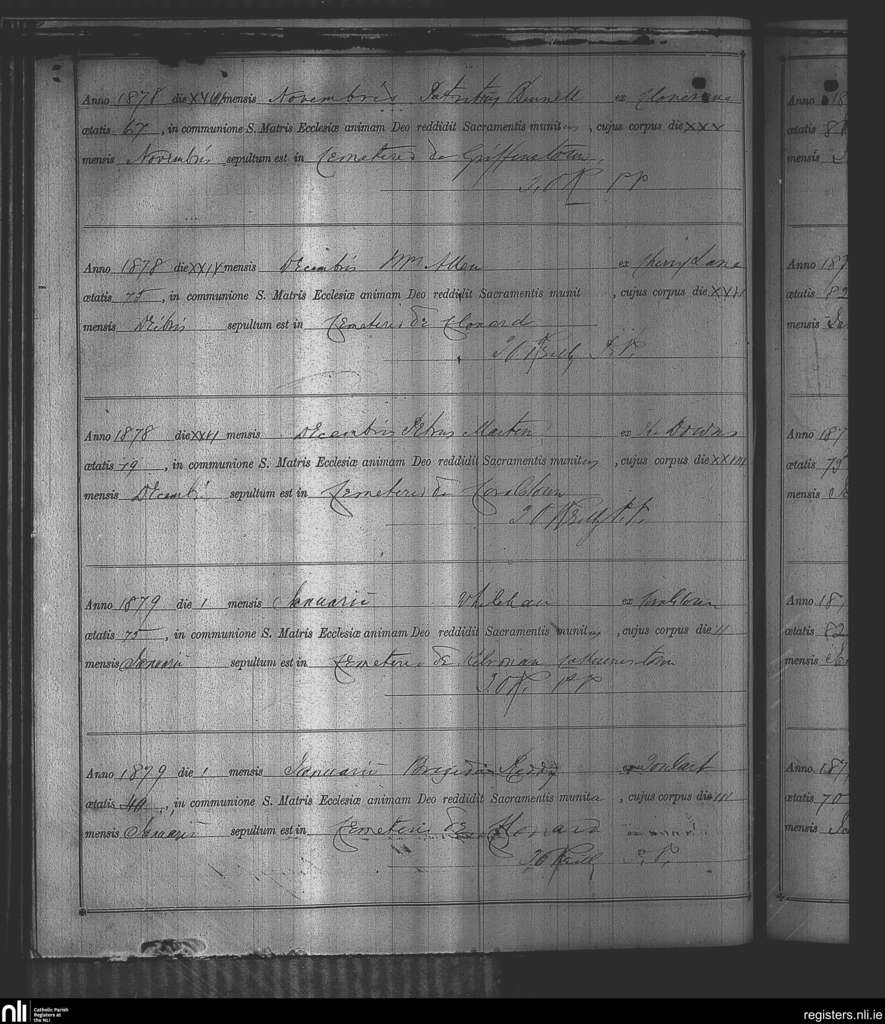 Kinnegad; County of Westmeath; Diocese of Meath. Deaths, Nov. 1878 to Jan. 1879