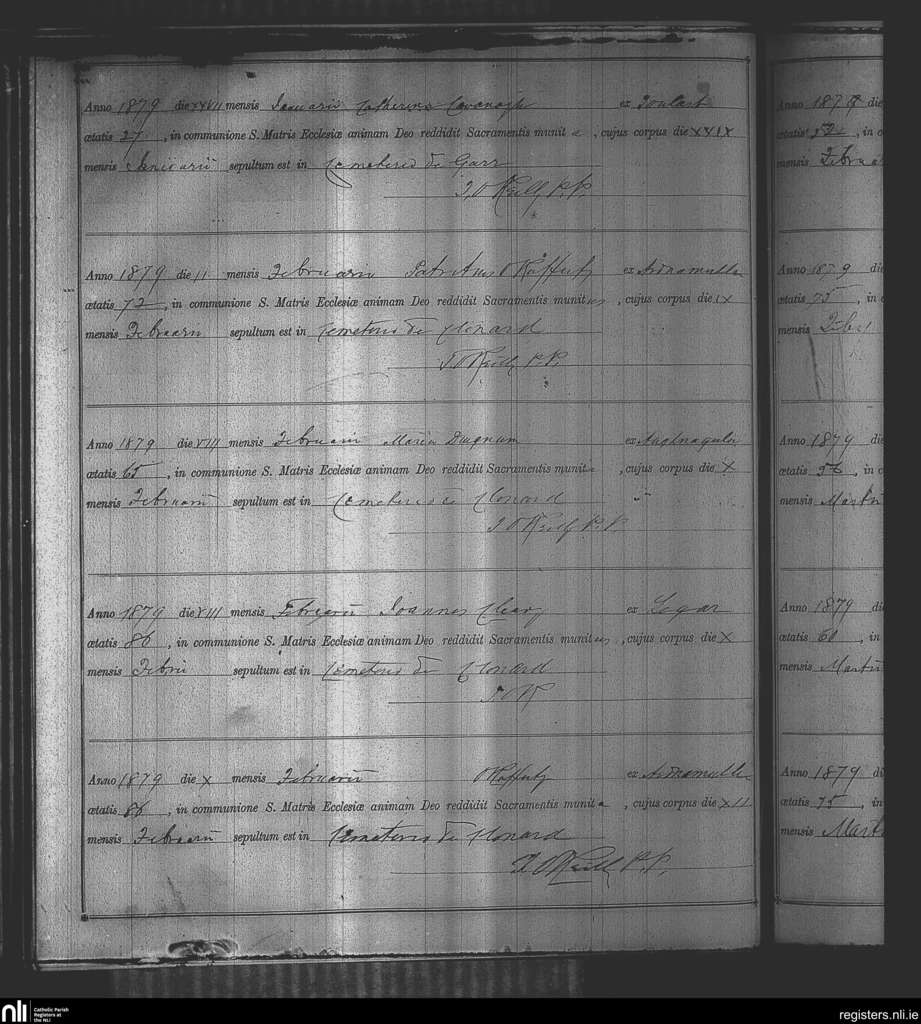 Kinnegad; County of Westmeath; Diocese of Meath. Deaths, Jan. 1879 to Feb. 1879