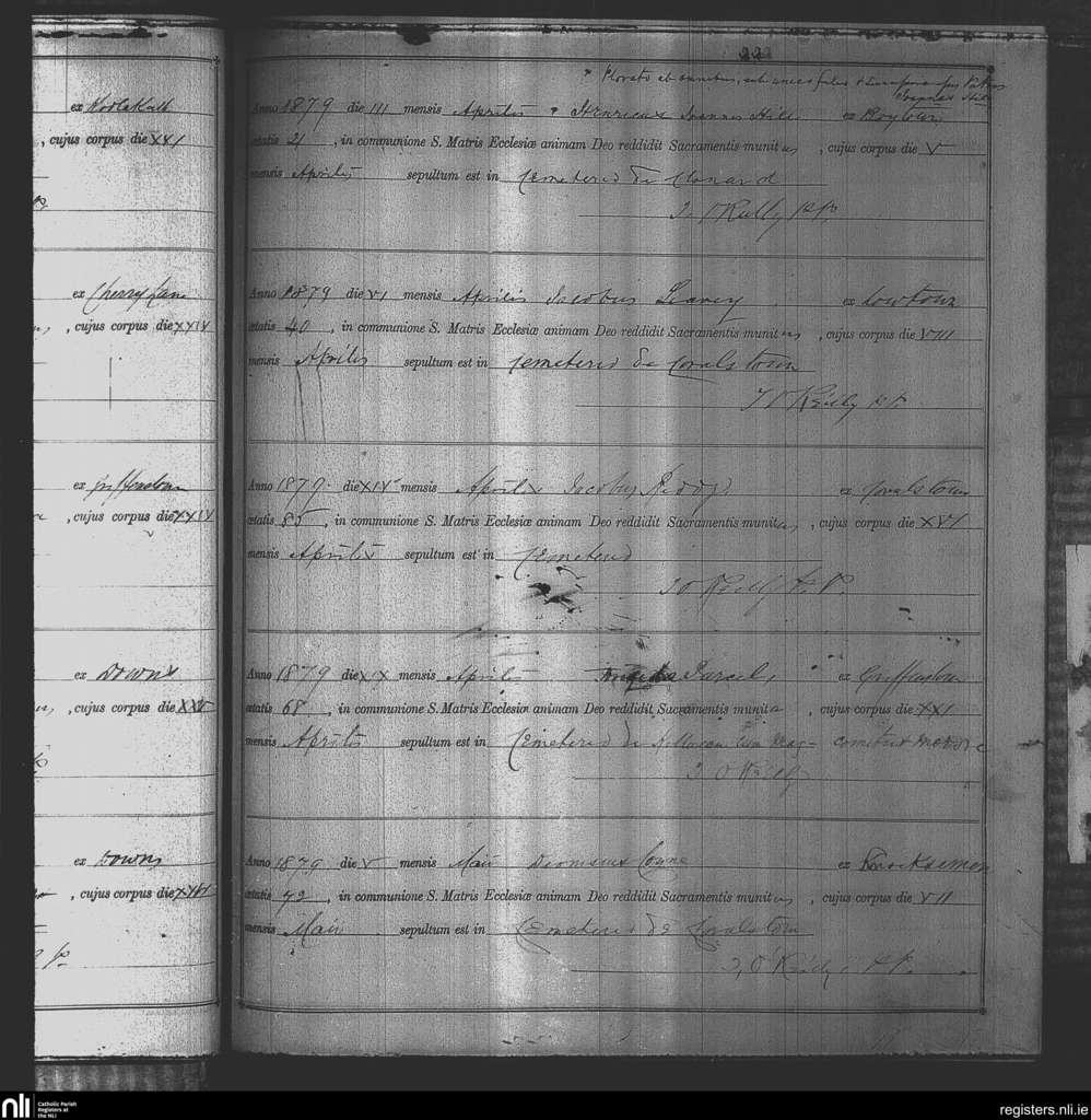 Kinnegad; County of Westmeath; Diocese of Meath. Deaths, Apr. 1879 to May 1879