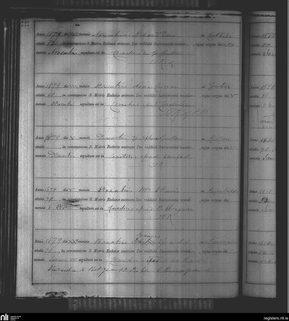 Kinnegad; County of Westmeath; Diocese of Meath. Deaths, Nov. 1879 to Dec. 1879