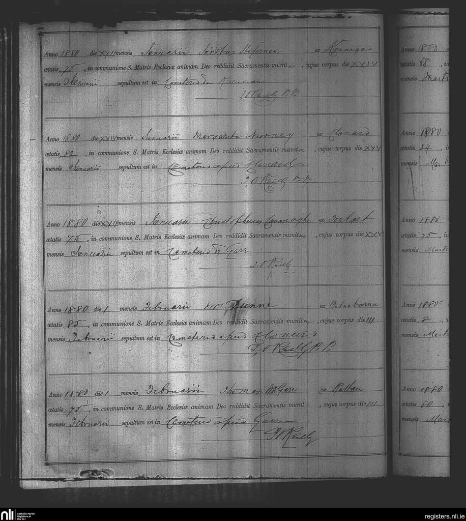 Kinnegad; County of Westmeath; Diocese of Meath. Deaths, Jan. 1880 to Feb. 1880