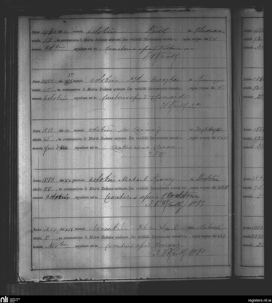 Kinnegad; County of Westmeath; Diocese of Meath. Deaths, Oct. 1880 to Nov. 1880