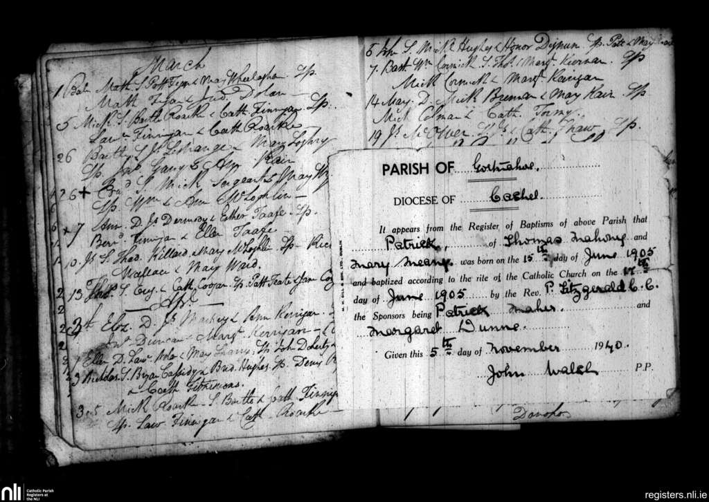Multifarnham; County of Westmeath; Diocese of Meath. Baptisms, June 1905