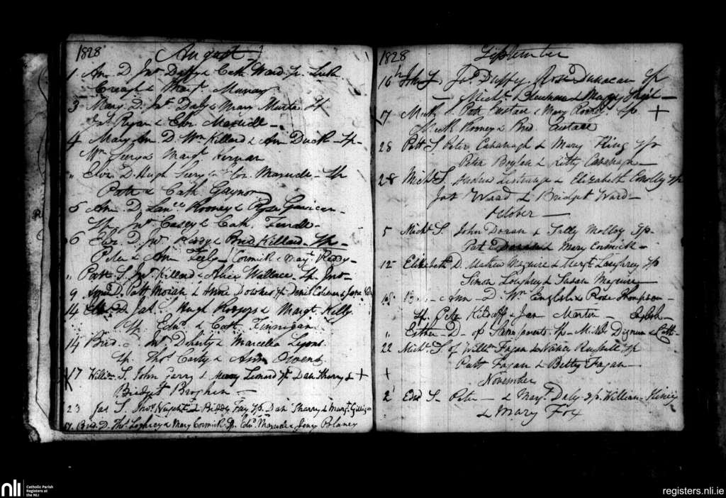 Multifarnham; County of Westmeath; Diocese of Meath. Baptisms, Aug. 1828 to Nov. 1828