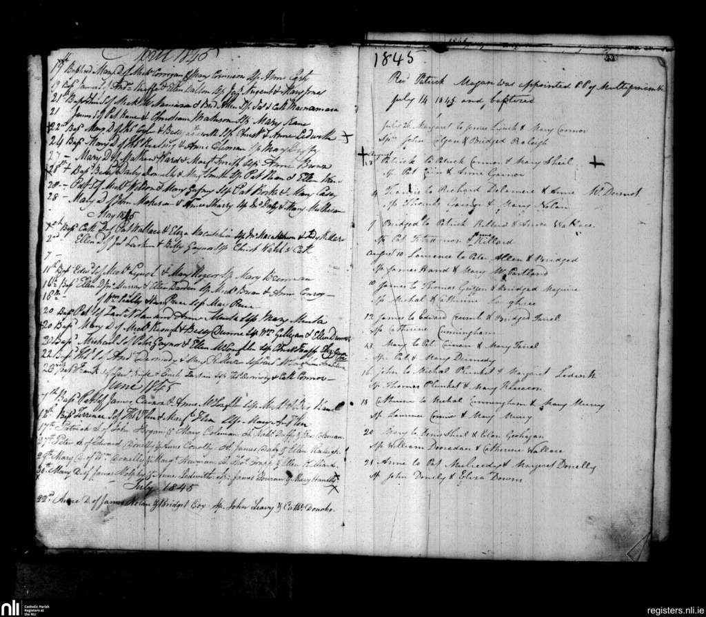 Multifarnham; County of Westmeath; Diocese of Meath. Baptisms, Apr. 1845 to Aug. 1845