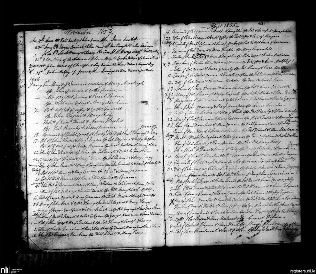 Multifarnham; County of Westmeath; Diocese of Meath. Baptisms, Nov. 1854 to Sep. 1855