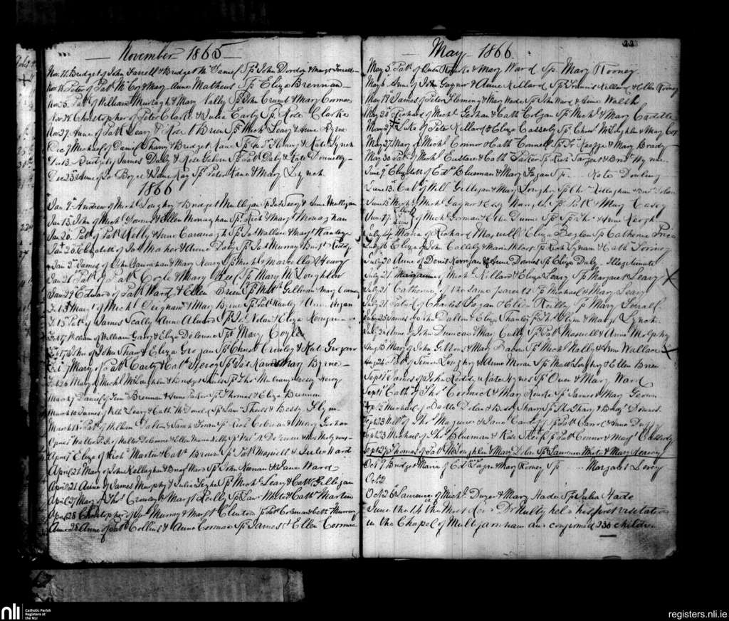 Multifarnham; County of Westmeath; Diocese of Meath. Baptisms, Nov. 1865 to Oct. 1866
