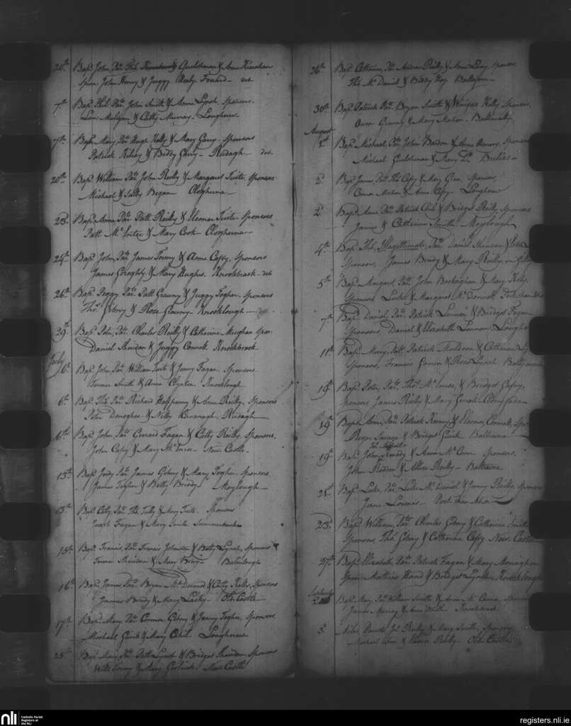 Oldcastle; County of Meath; Diocese of Meath. Baptisms, June 1789 to Sep. 1789