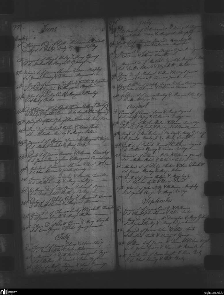 Oldcastle; County of Meath; Diocese of Meath. Baptisms, June 1795 to Sep. 1795