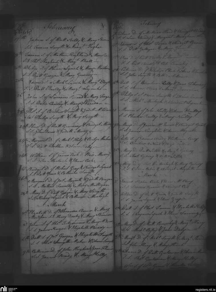 Oldcastle; County of Meath; Diocese of Meath. Baptisms, Feb. 1798 to Mar. 1798