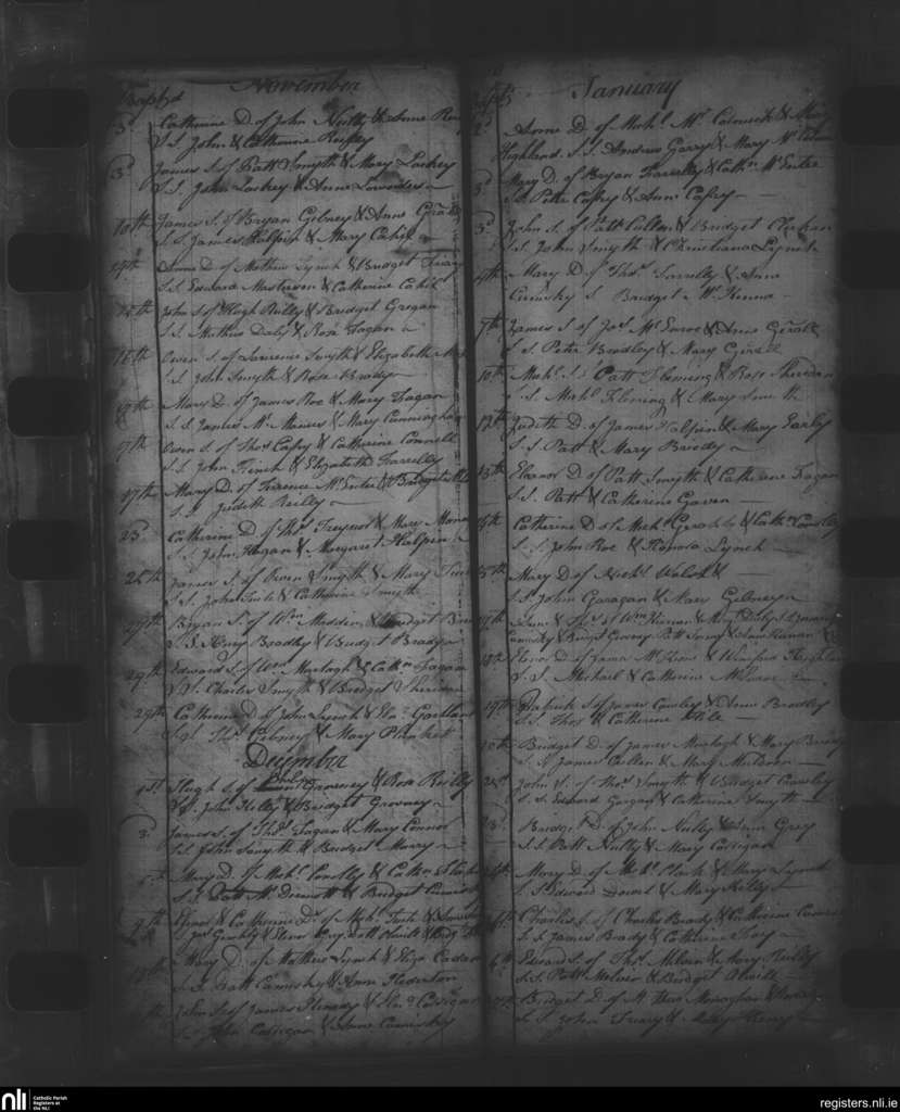 Oldcastle; County of Meath; Diocese of Meath. Baptisms, Nov. 1799 to Jan. 1800