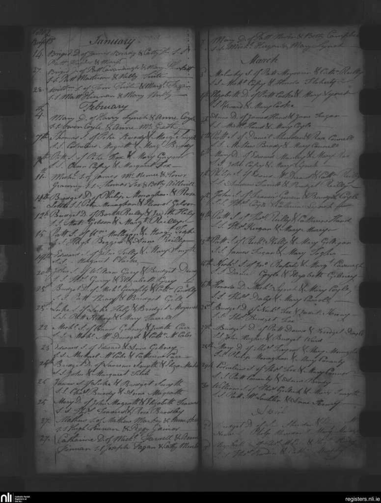 Oldcastle; County of Meath; Diocese of Meath. Baptisms, Jan. 1802 to Apr. 1802