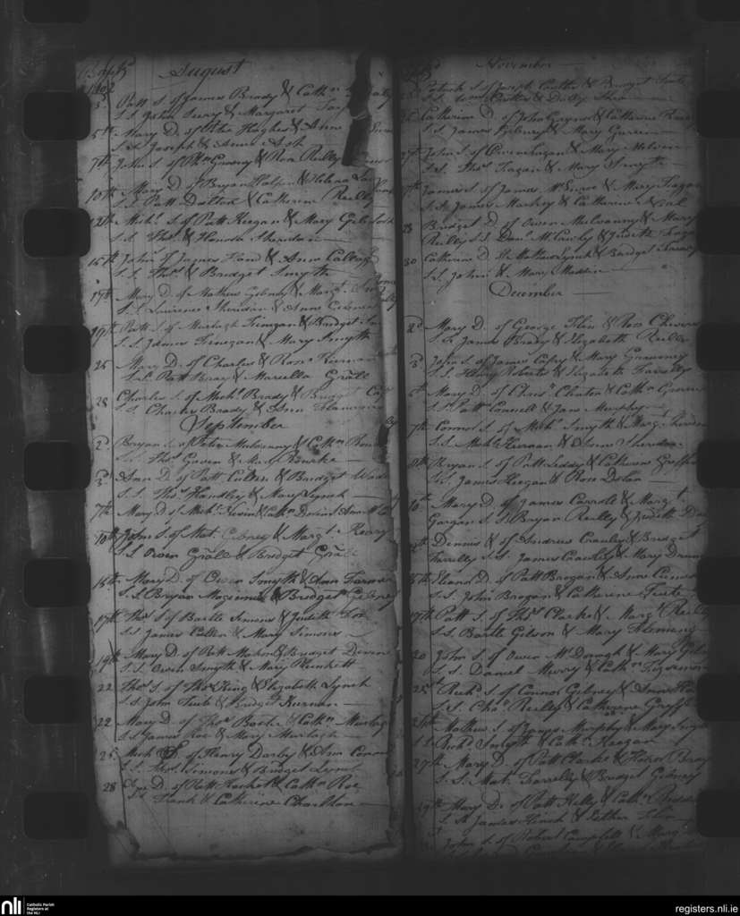 Oldcastle; County of Meath; Diocese of Meath. Baptisms, Aug. 1802 to Dec. 1802