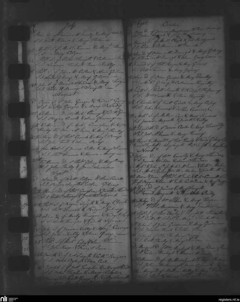 Oldcastle; County of Meath; Diocese of Meath. Baptisms, July 1805 to Nov. 1805
