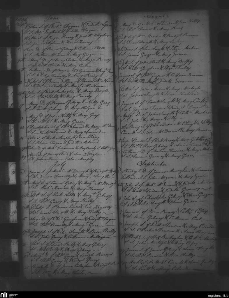 Oldcastle; County of Meath; Diocese of Meath. Baptisms, June 1806 to Sep. 1806