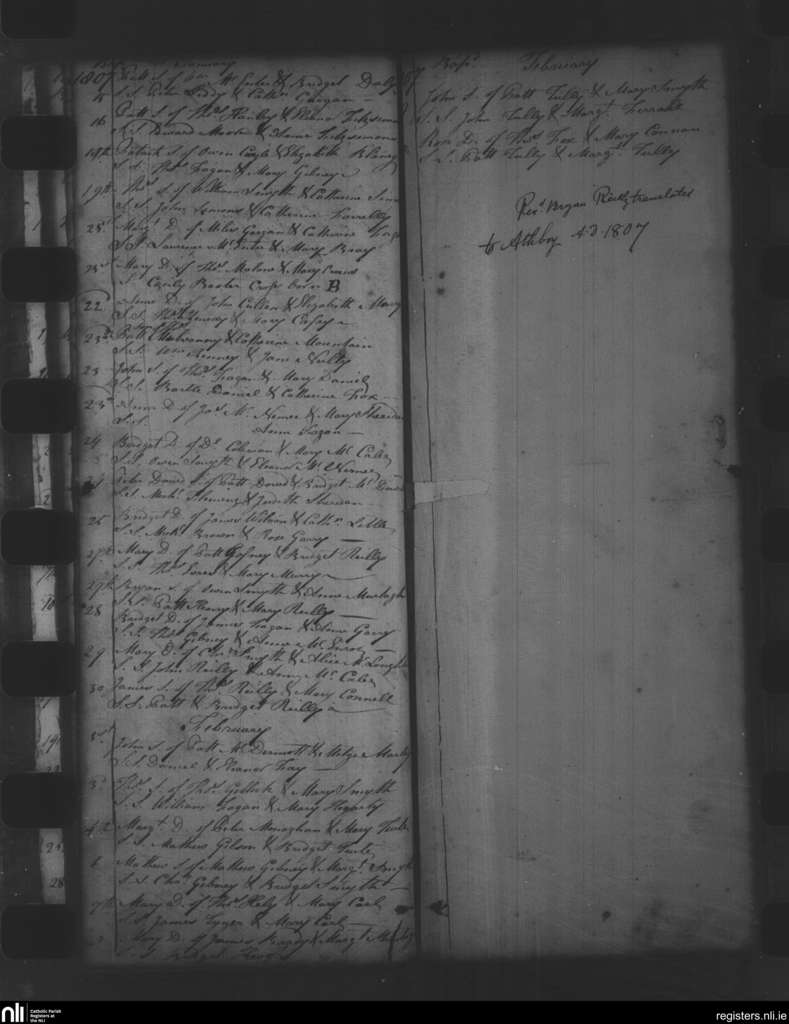 Oldcastle; County of Meath; Diocese of Meath. Baptisms, Jan. 1807 to Feb. 1807